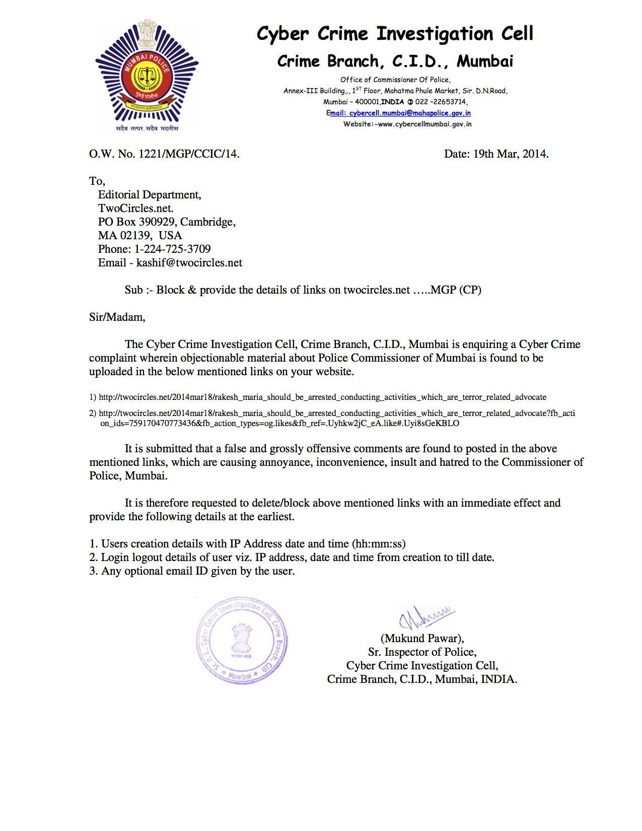 Siddharth On Twitter Mumbai Cops Invoke Cybercrime Law To Demand A Website Remove An Article Http T Co J1b7eiaiy6 Against Police Chief Http T Co 9g3lnkhteo Twitter