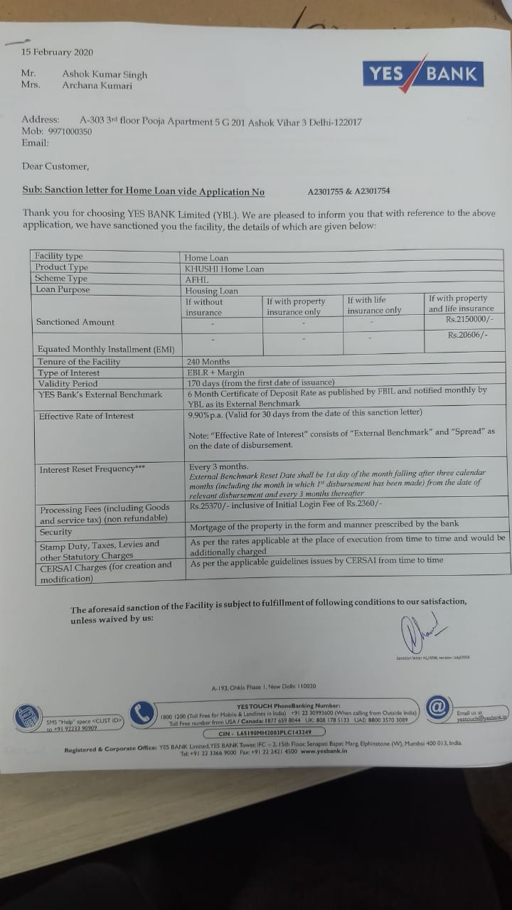 I have paid all my pending home loan amount and please find the copies of bill receipts enclosed with this letter. Benchmark rate to which the floating interest rate is linked along with applicable spread. A Home Loan Sanction Letter is based on eligibility.