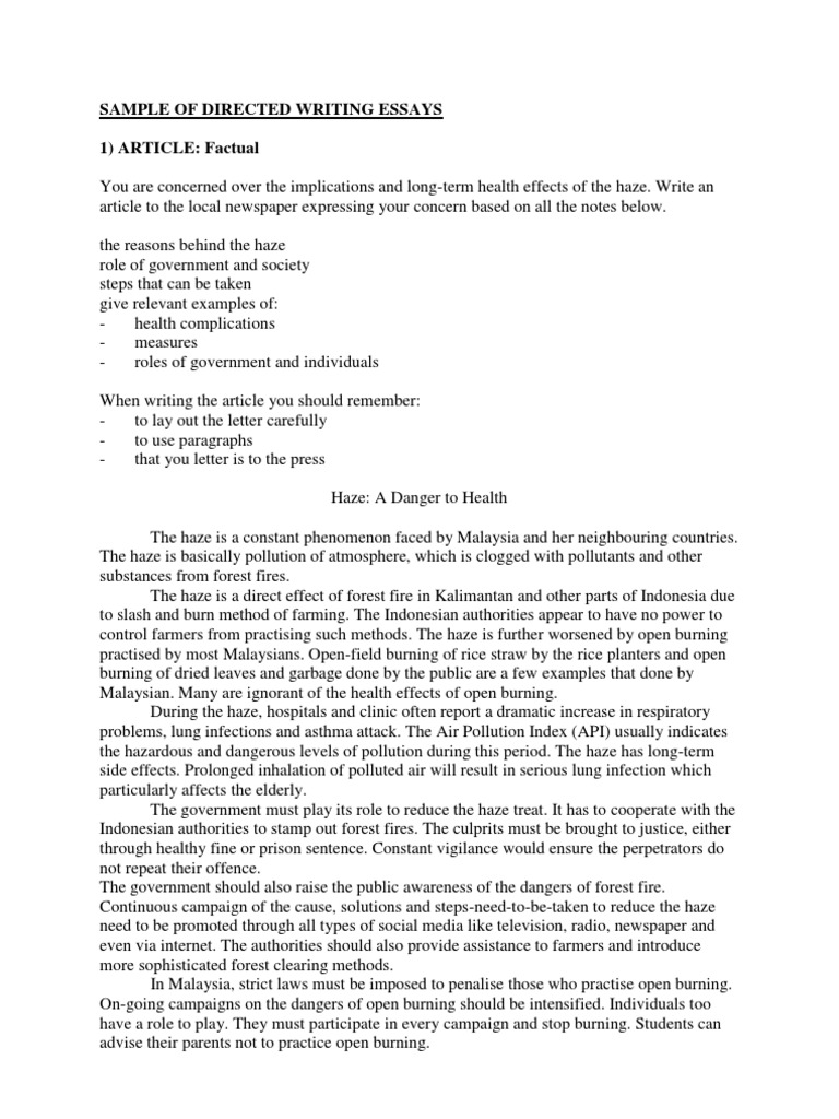 I miss him tooThe reason I write this letter is to tell you about my expedition to Langkawi. Factual You are concerned over the implications and long-term health effects of the haze. 46 Model Essay Samples for SPM English O-level IELTS TOEFL MUET Writing Preparing for the upcoming MUET writing test and want to read some good essay examples.