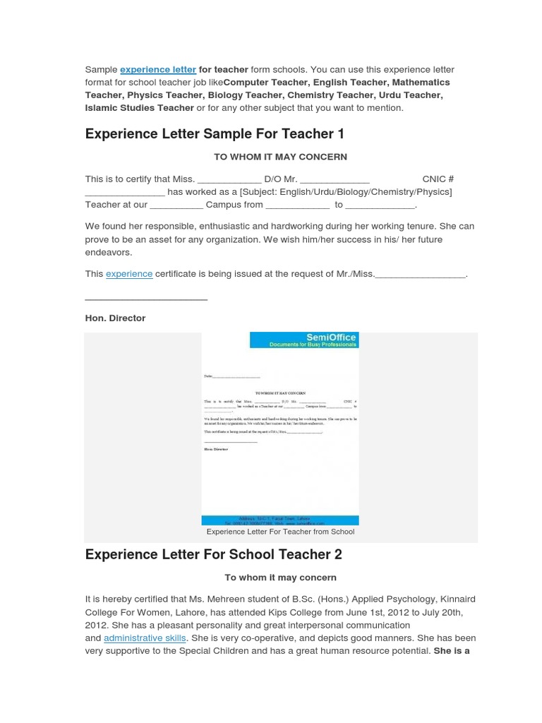 Sample Experience Certificate Format For School Teacher Pdf Teachers Curriculum