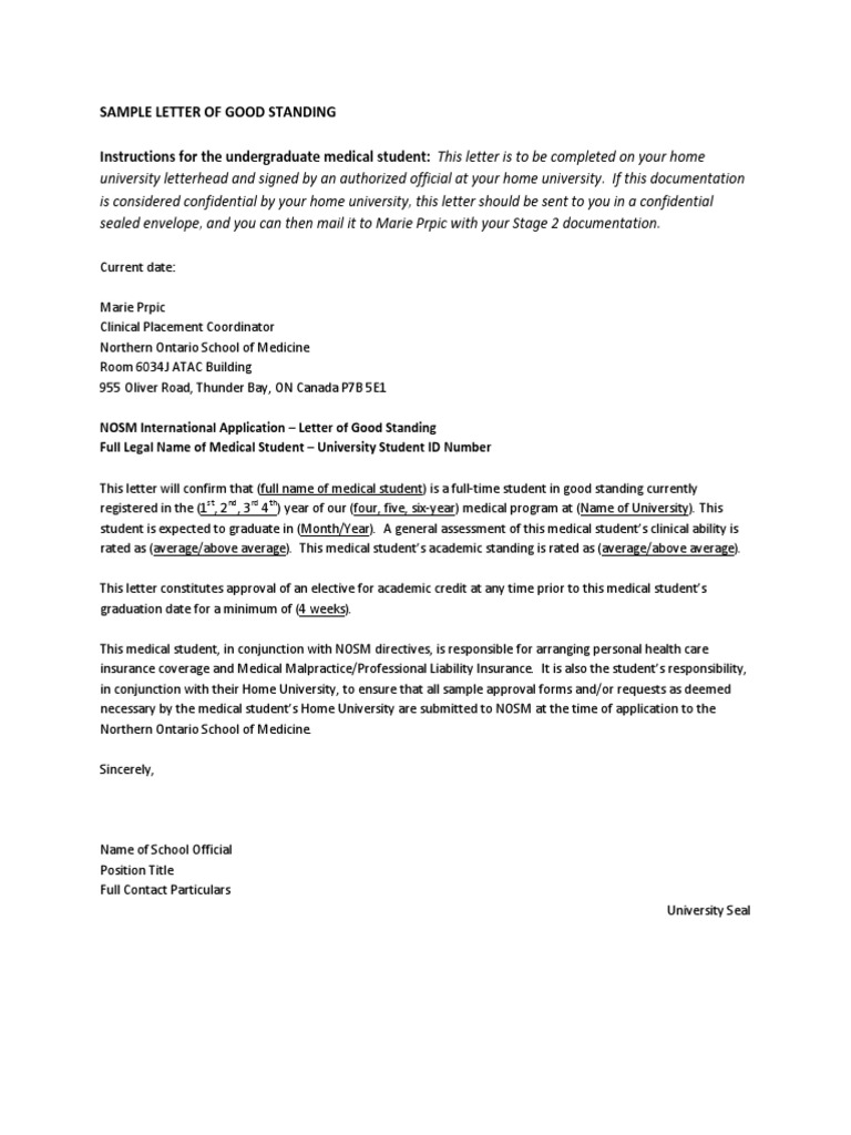 Nosm International Undergraduate Sample Letter Of Good Standing Pdf