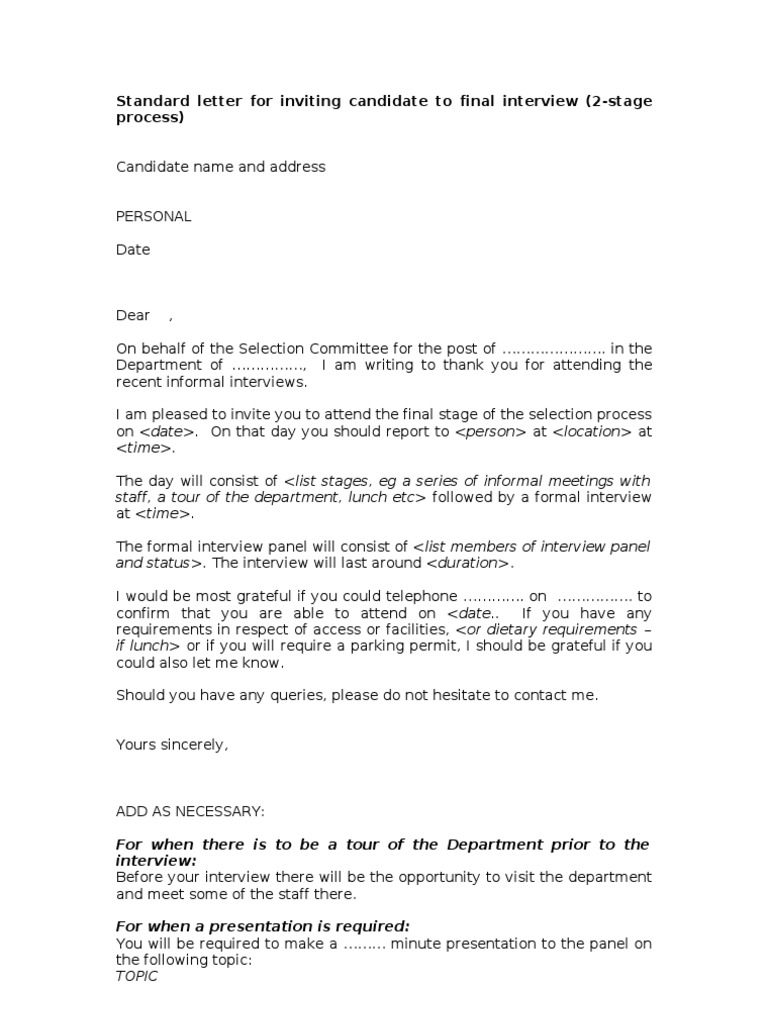 It is a Legal and official Document issued by an Organization to a Qualified and Selected candidate offering a job and. Dear Sami You are invited for an interview at OBTC on Date and Time. 39 Interview Letter Templates - Download Now Adobe PDF Microsoft Word DOC Google Docs Apple MAC Pages A candidate will need to leave a good first impression to the interviewer.