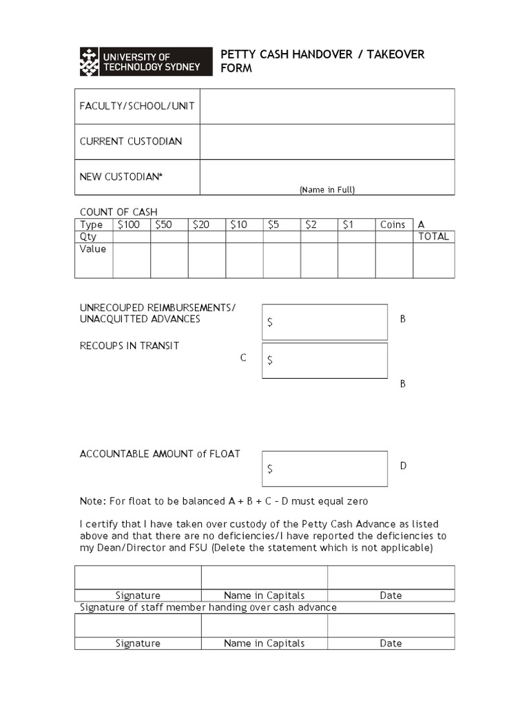 Petty Cash Handover Pdf Cash Money